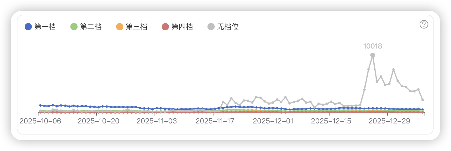 各档位关键词词量:他获得高档位(强表现)的关键词数量是否在增加?这是其核心竞争力增强的最直接信号。