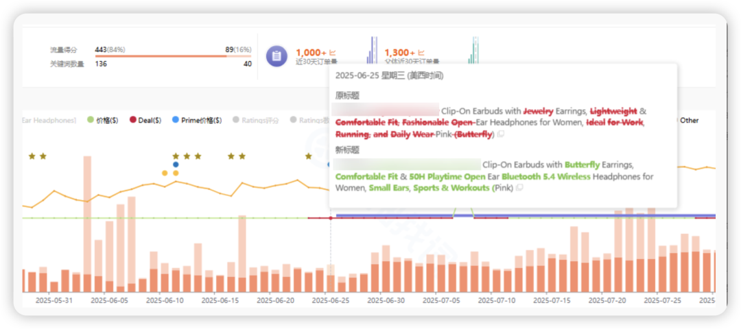 开始有意识去做非标动作,比如从重点展示耳机到重点展示蝴蝶装饰,标题把珠宝相关关键词前移等等