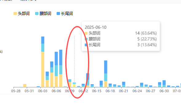 从流量上也可以看出来,整体推广方法粗糙,硬怼大词补一些小词。但是到6月就出现了大量非标类型的广告词,运营终于发现了大词效果一般,ROI很难看。