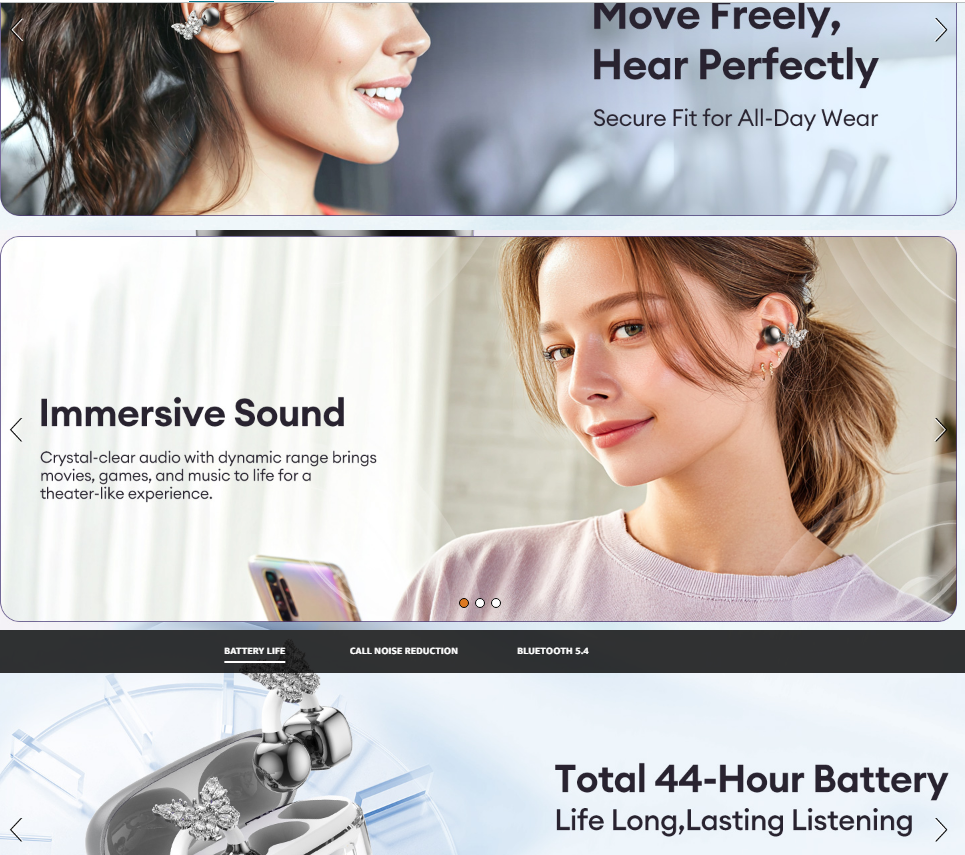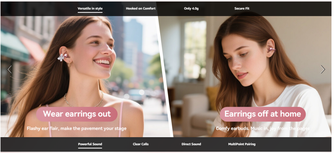 - 视觉设计围绕“装饰性”展开,而不是强调耳机的参数。