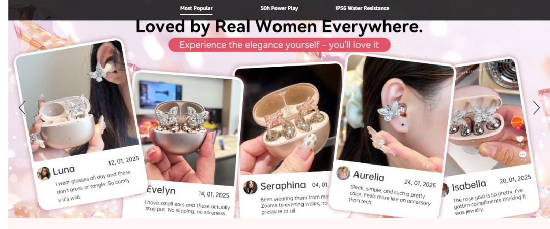 注意到了吗,她们对首饰的需求在这个时候成为了刚需,而开放式耳机+配饰的方案解决了这部分用户的需求痛点,加上市场也没有太多的竞品,所以一推就爆。