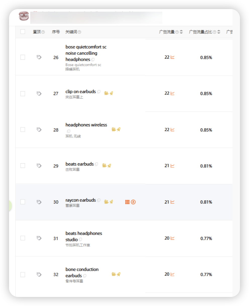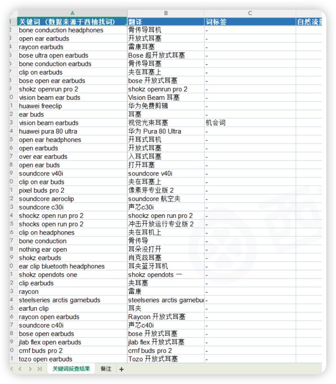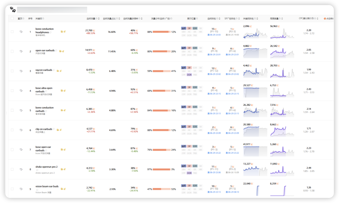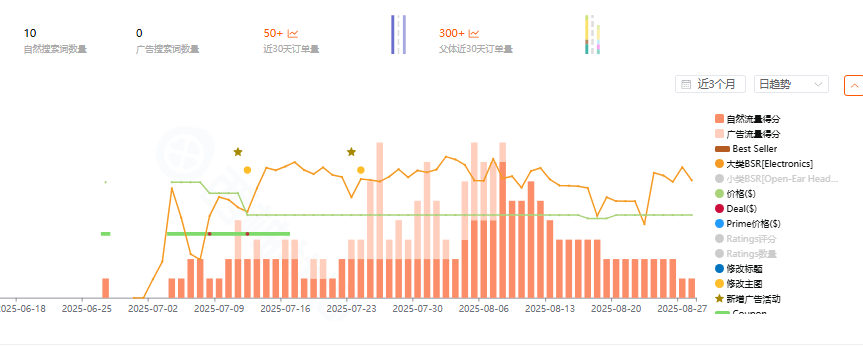 而开放式耳机作为非常标品的一个类目,其他产品一定是非常精准的功能词/品牌词/产品本身的词。于是我BS里面找一个同期产品: