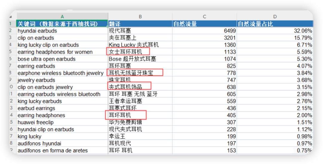 从结果可以看到,关键词与预期一致。普通的常规产品如果按照标品去打,核心关键词都是那些非常标准的关键词,难度非常大,不是卷品牌就是卷参数,最后都会变成卷价格。