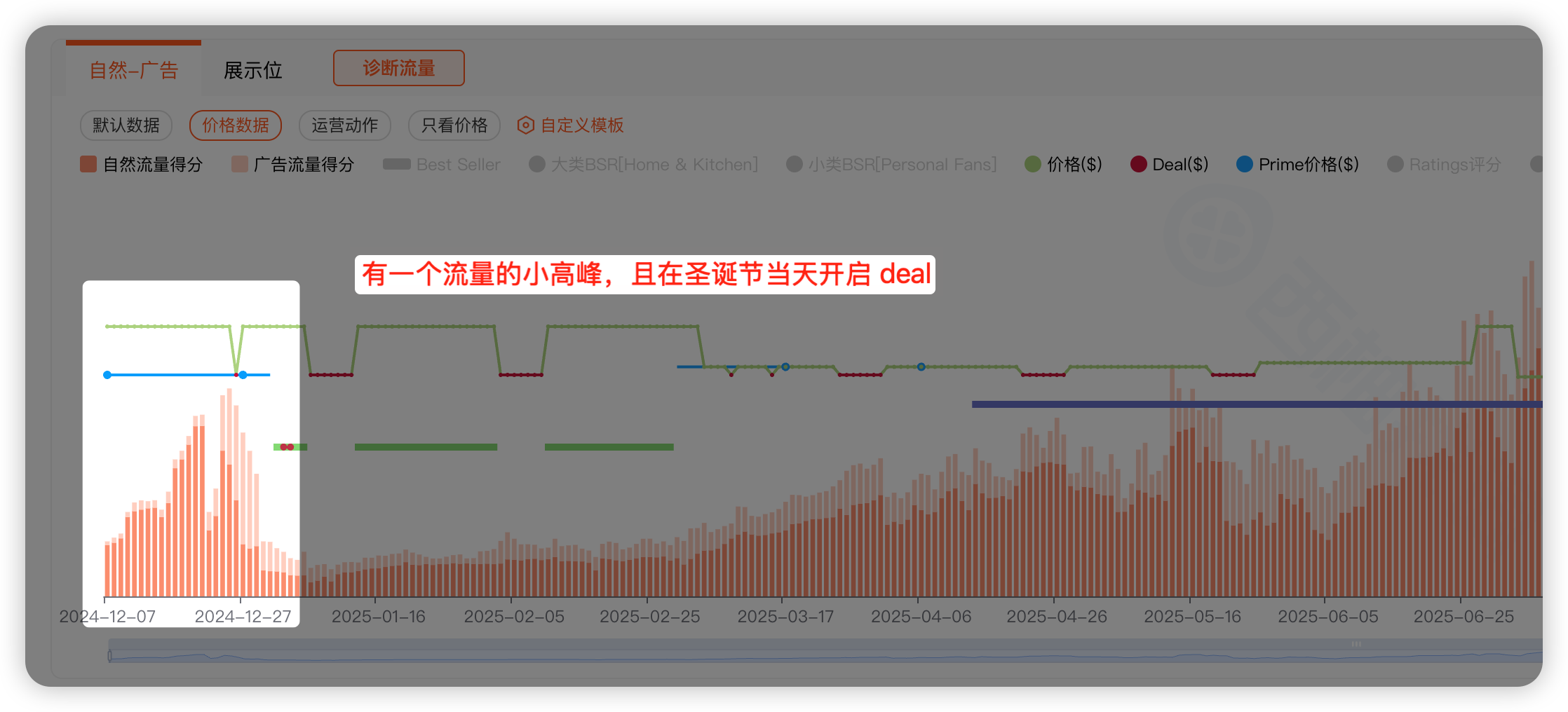 我们可以清晰地看到,该 ASIN 在去年圣诞节期间有一个明显的流量高峰(如下图),同时我们发现,他在圣诞节当天(12.25)有进行 Deal 活动。