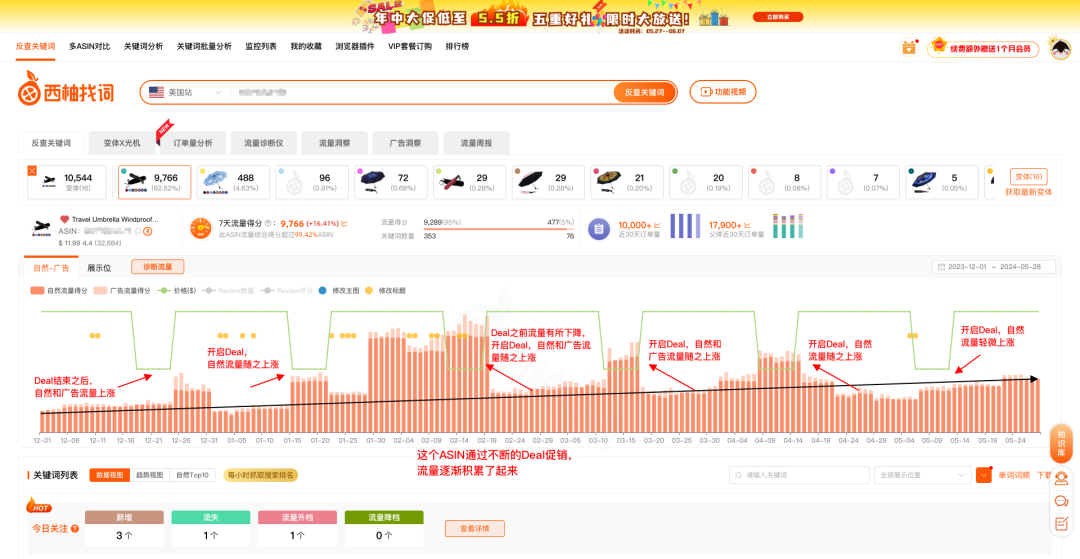 下图ASIN则是通过不断的降价促销,逐渐把自然流量积累起来。