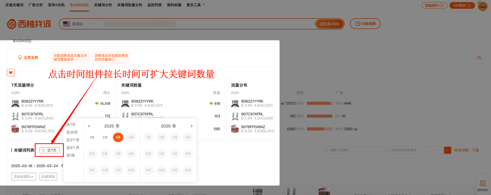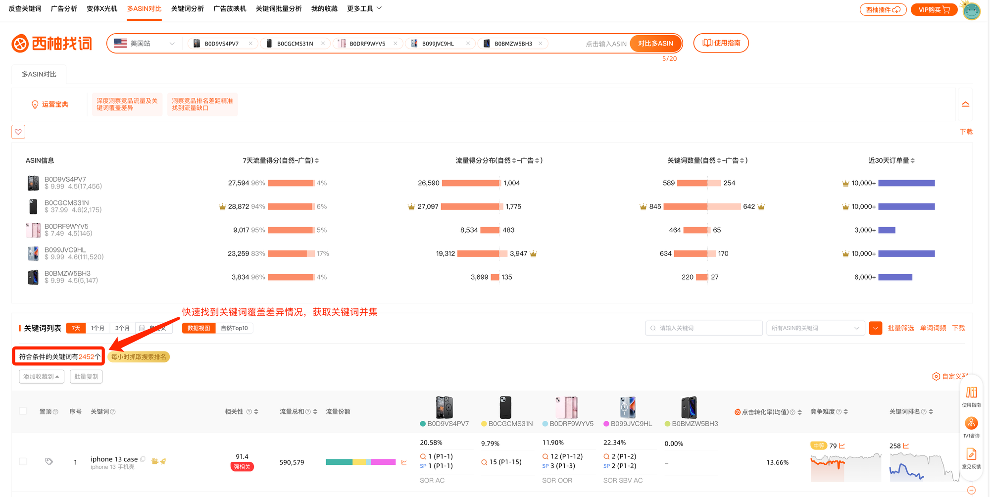 1、多ASIN对比--竞对关键词覆盖差异以及流量对比