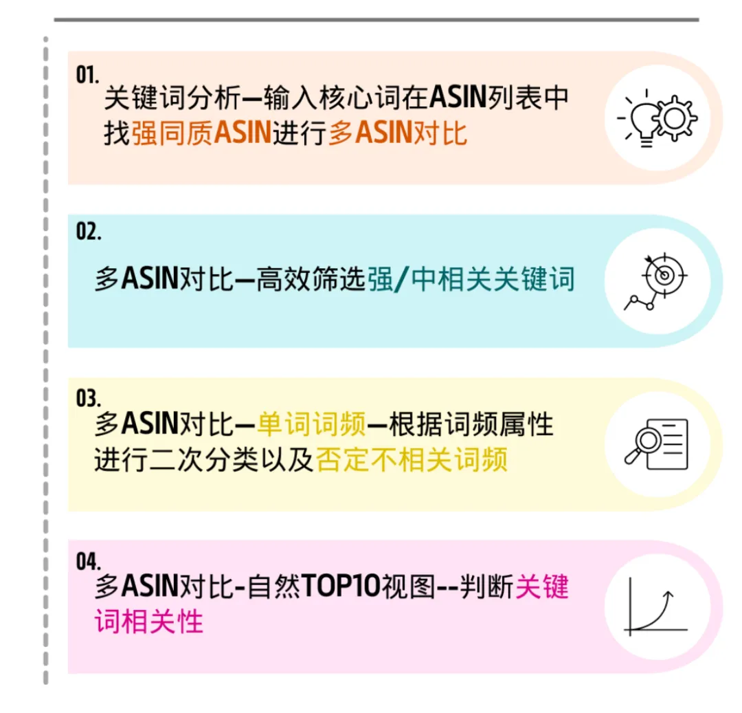 1、关键词分析--输入核心词在ASIN列表中找强同质ASIN进行多ASIN对比