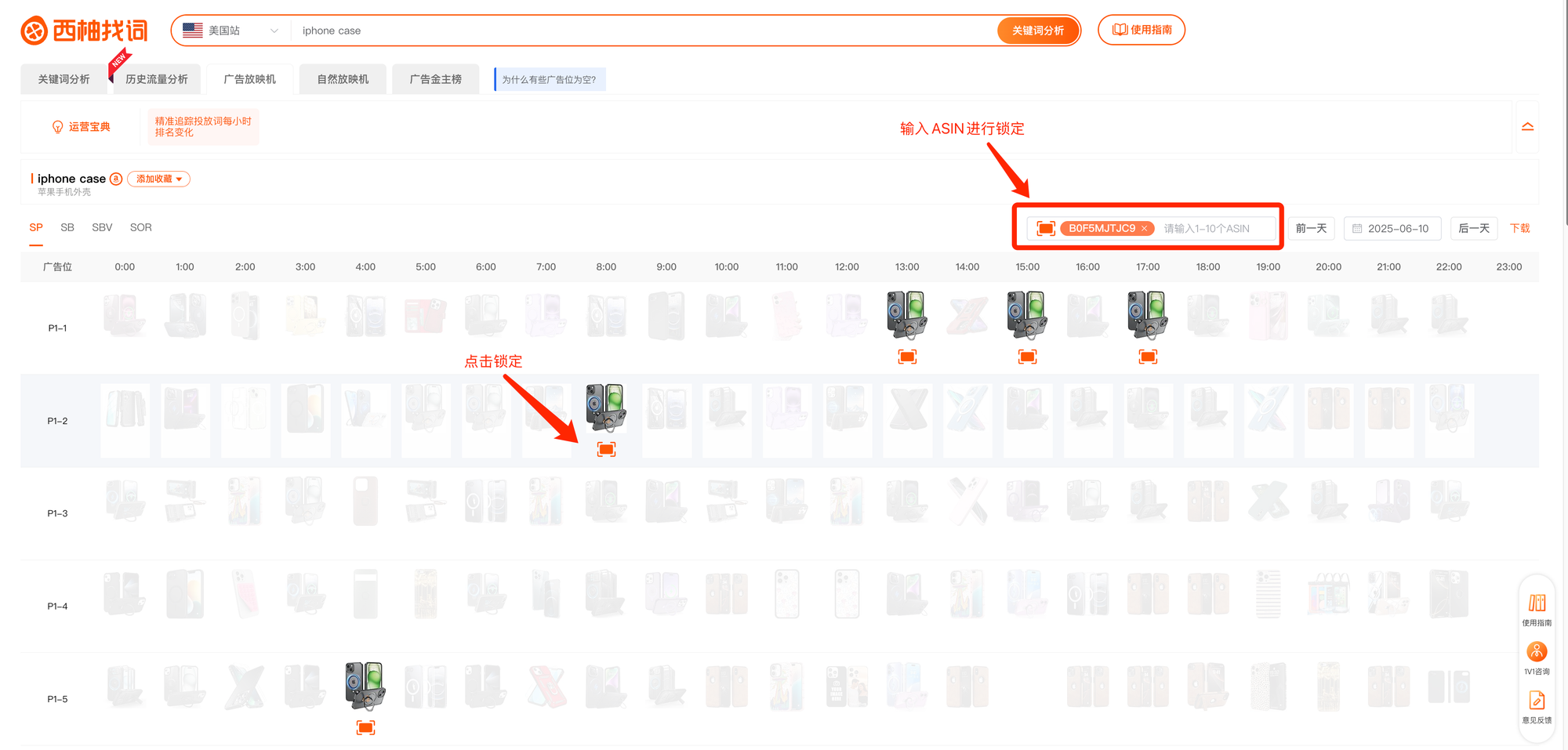 在广告放映机中,我们能够清楚地看到每个小时,每个广告位置上出现的ASIN是哪些。