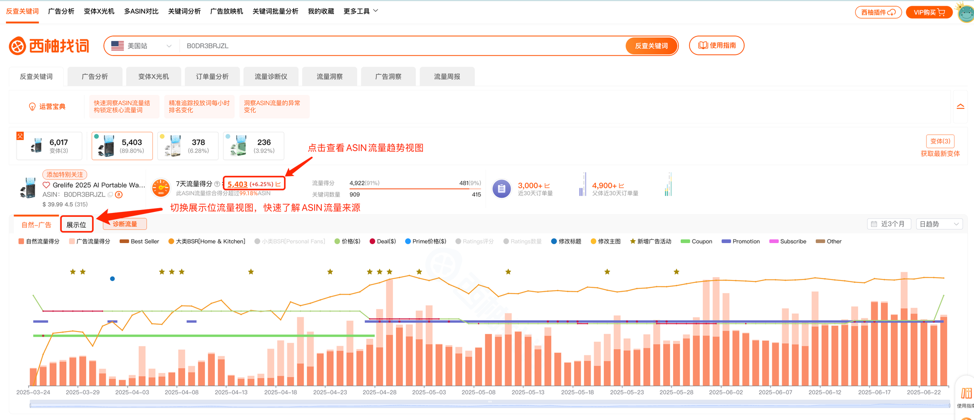 1、反查关键词– ASIN流量趋势--快速对产品流量入口进行监测