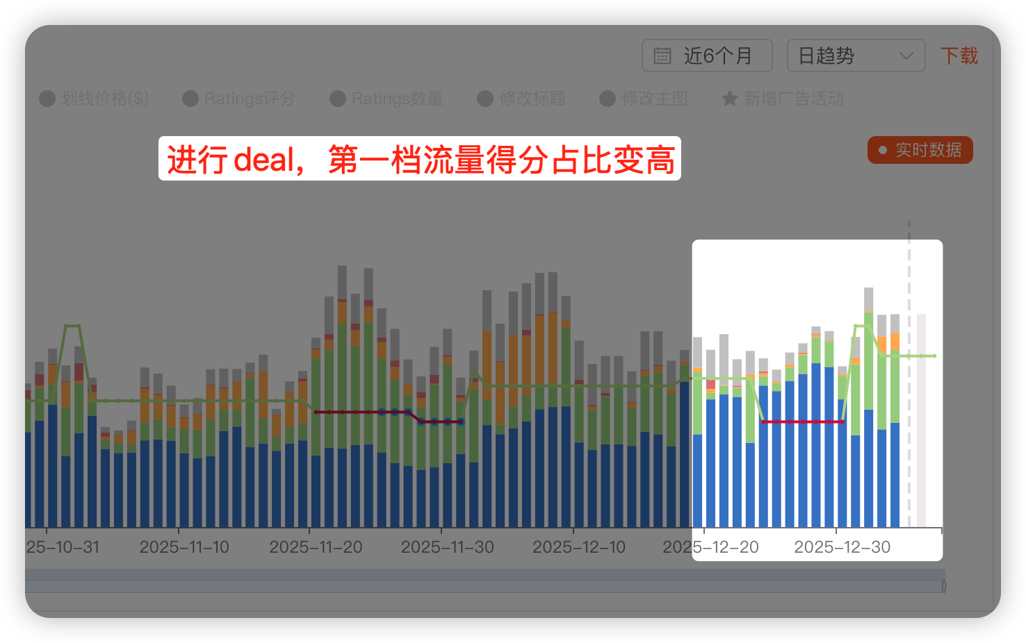 我们把运营动作标记在了时间轴上(Deal秒杀、Price调价等)。可以直接验证因果关系: