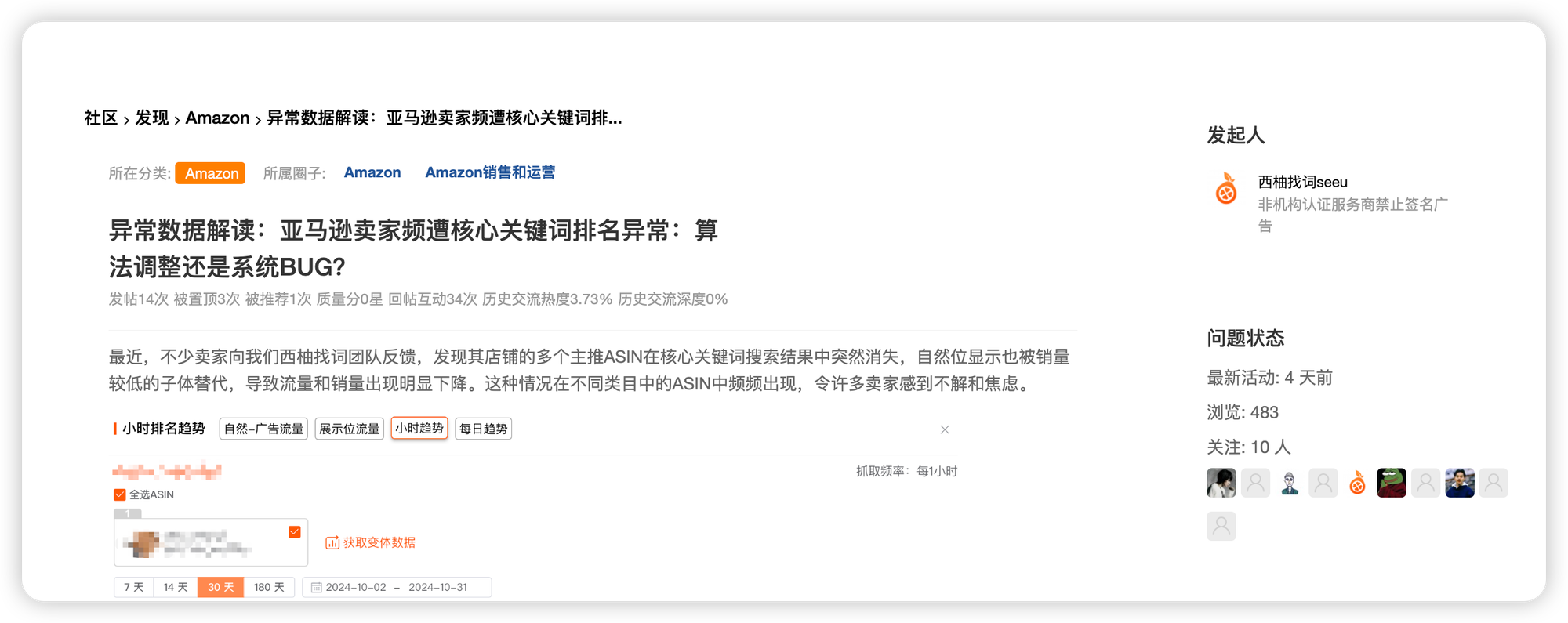 近期很多卖家向西柚找词团队反馈:店铺的多个主推ASIN在关键词搜索结果中的自然排名突然全部消失,导致流量和销量出现明显下降。