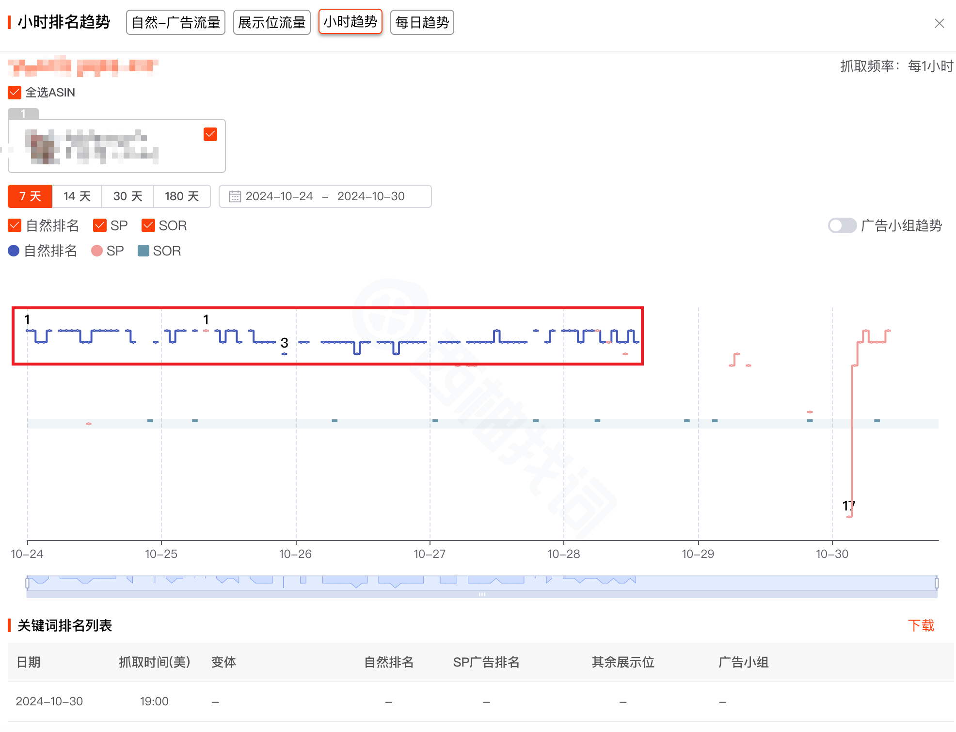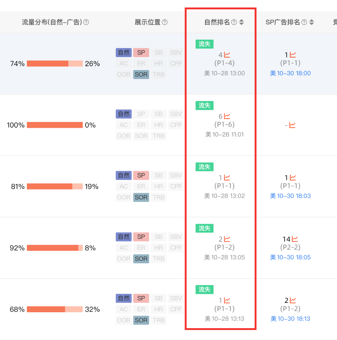 PS:流失指对比前1天ASIN在关键词下的自然排名消失情况