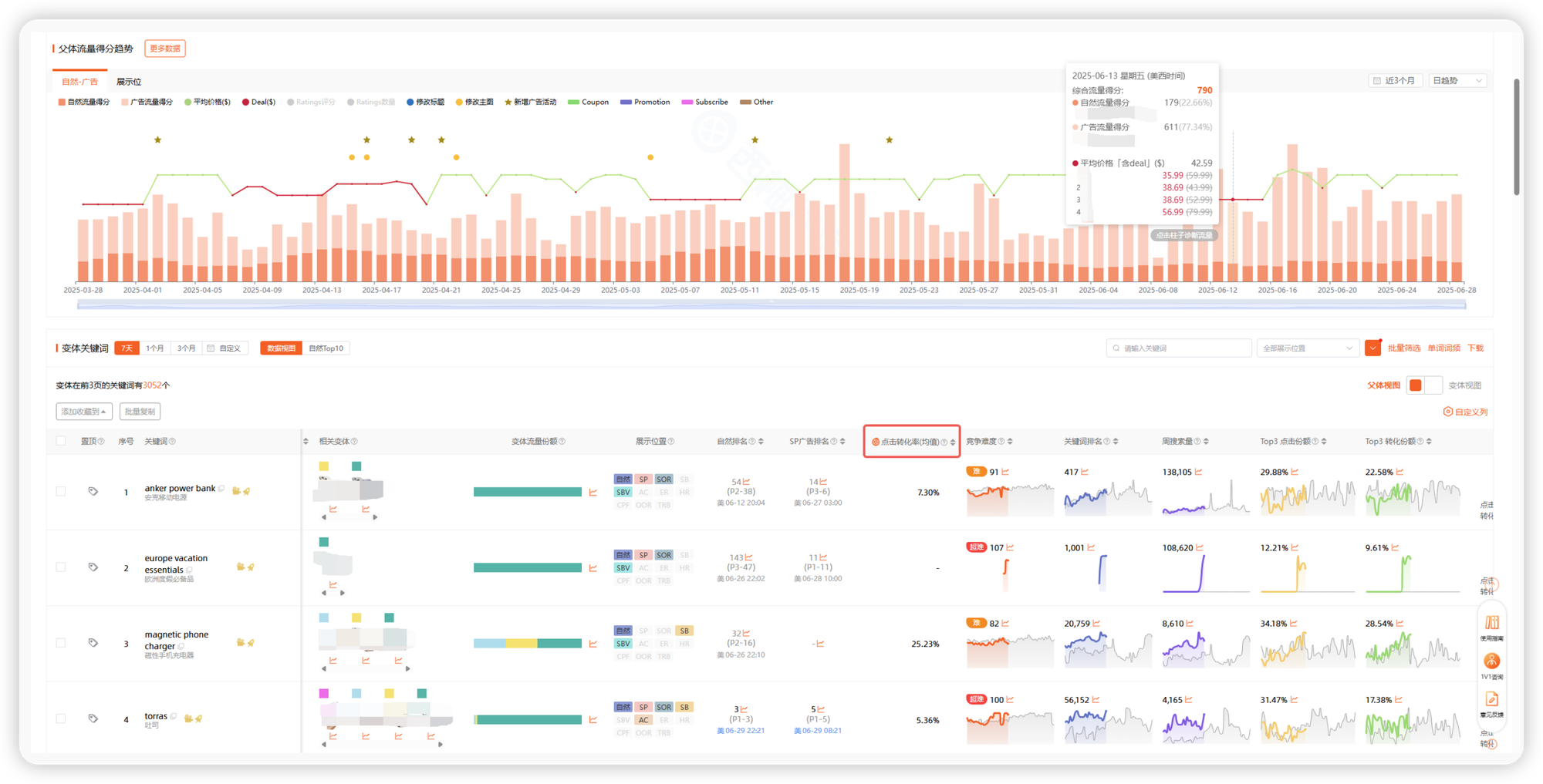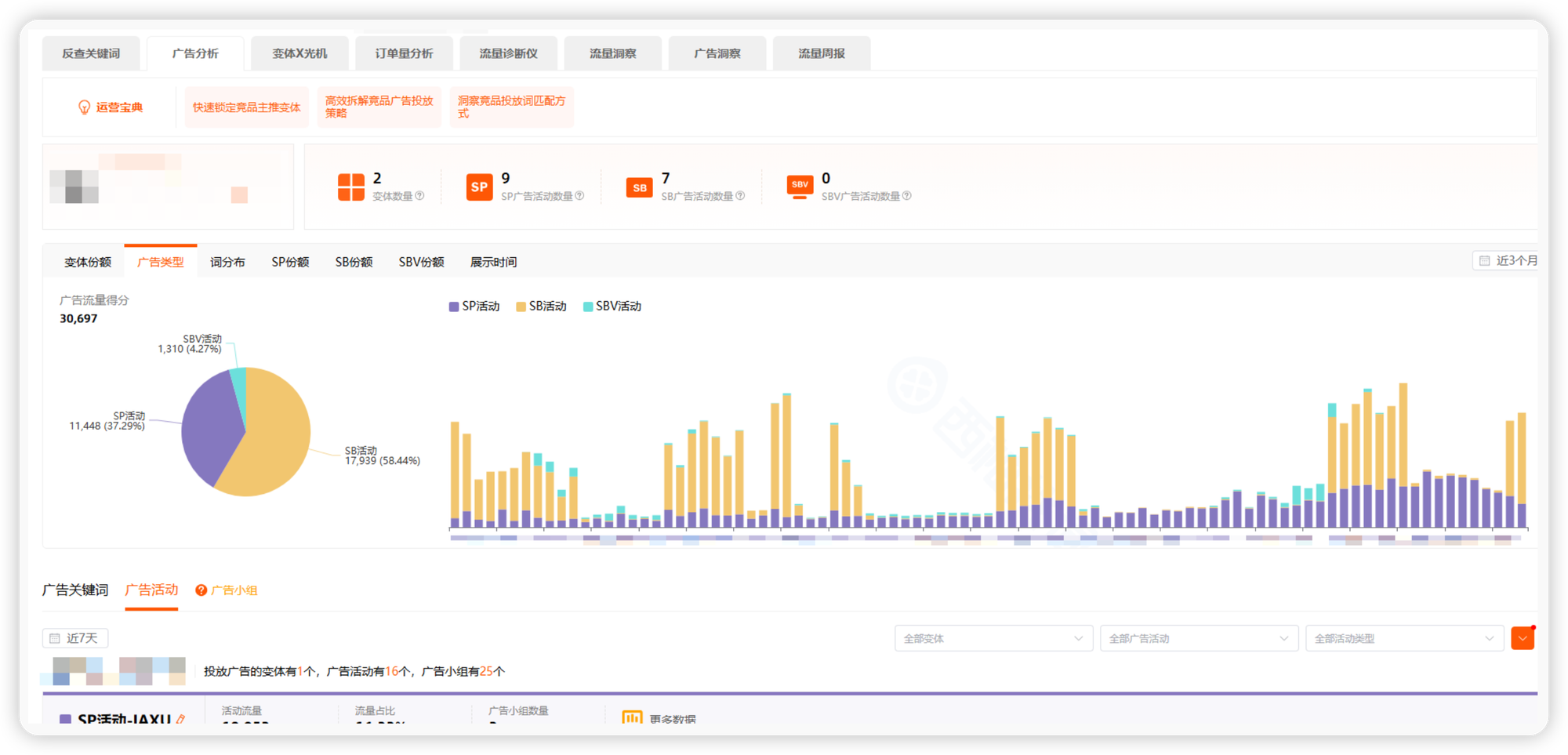 有个功能上变体X光机,用来精细化运营分析竞品在新品期不同阶段各自采取了什么手段。以及在流量洞察那里,看不同阶段新增主攻哪些关键词,什么时候主打大词、腰部词、长尾词。