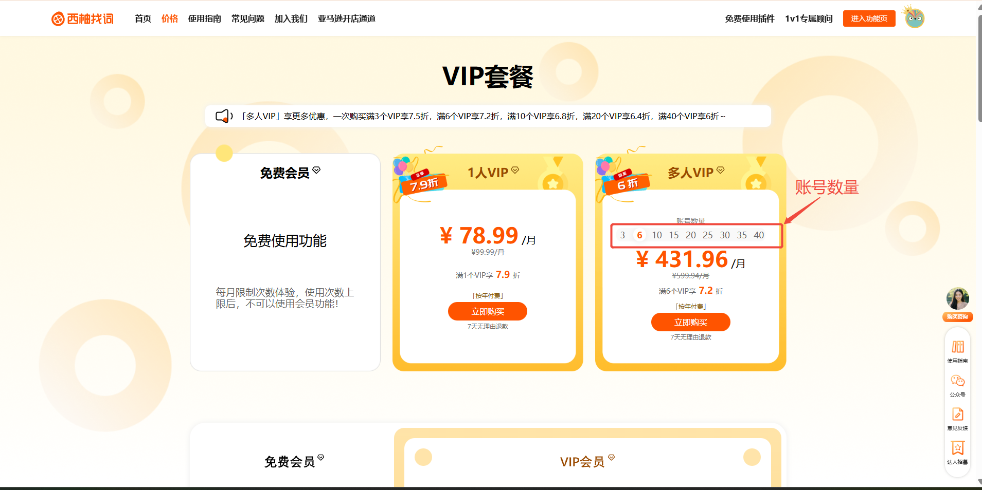 账号购买使用问题 购买的账号数量是什么意思? 1、团队套餐购买者为团队管理员,购买的账号数量即为可同时使用VIP会员的人数;2、假设购买3人团队套餐,即管理员可以分配VIP身份给3个人同时进行使用。3、管理员默认没有VIP账号,如果管理员也需要使用的话,需要占用1个VIP名额。 Previous Next