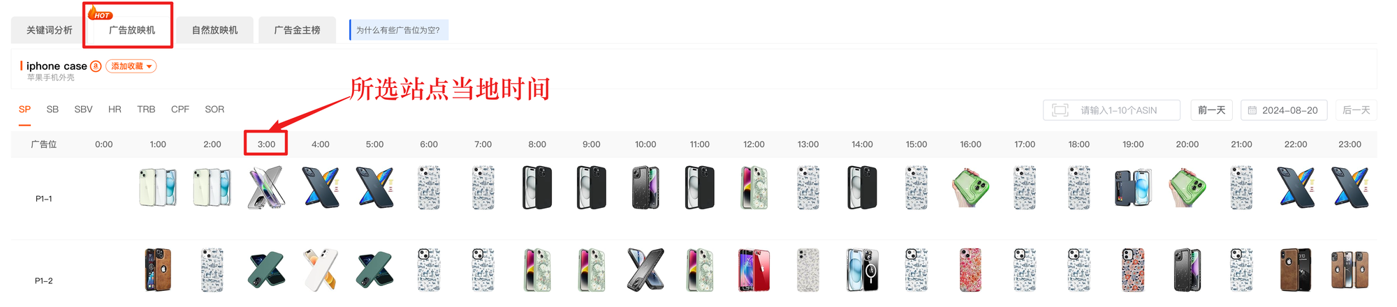 广告放映机显示的是所选站点的当地时间。
