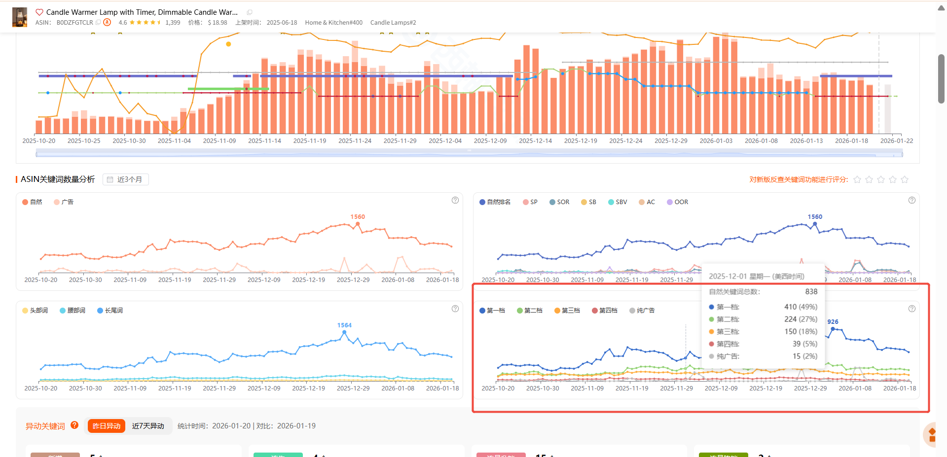 - 第一档位关键词数量越多、增长越快,代表你的产品在核心搜索词上的排名越靠前,核心自然流量基础就越稳固和强大