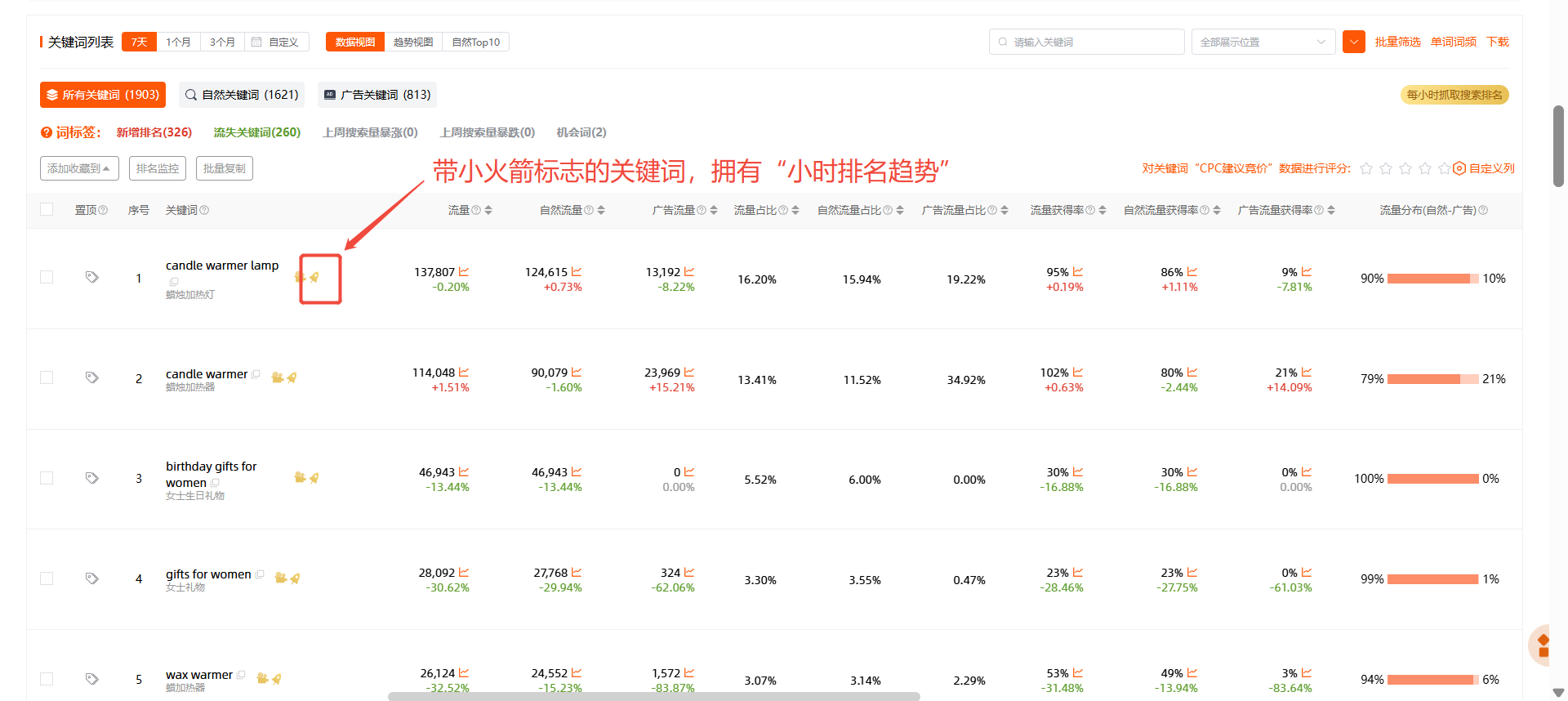 功能使用问题 为什么有些关键词有小时级排名趋势,有些没有? 1、目前只有最新ABA报告美国站前10万、英国站和德国站前5万的关键词有小时级排名趋势。2、有小时级排名趋势的关键词会带有“火箭🚀“标志。3、在最新ABA报告美国站前10万、英国站和德国站前5万以外的关键词,是每天抓取1次关键词搜索结果页排名,只有”每日趋势”。“反查关键词-关键词列表” Previous Next