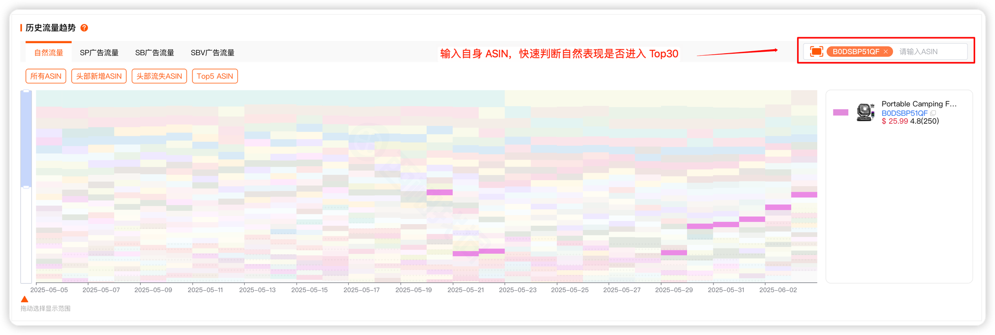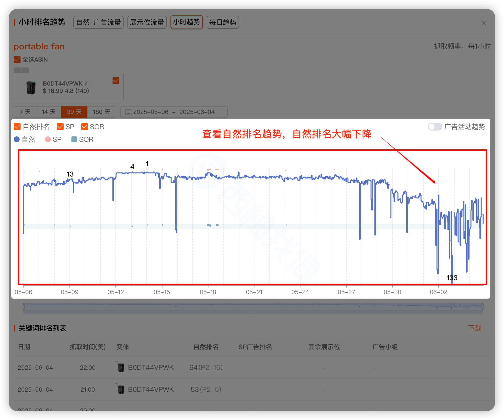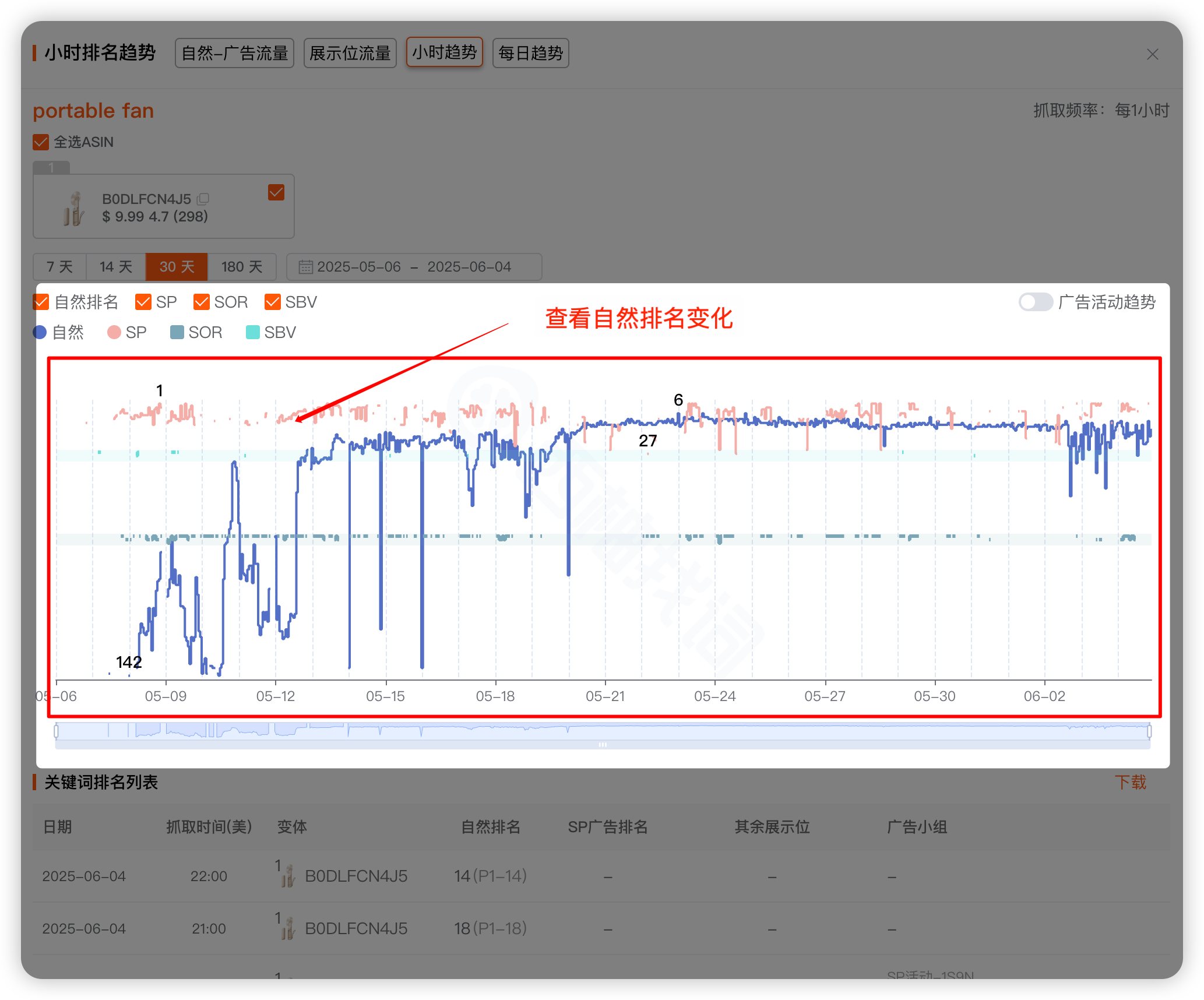 快速了解自身 ASIN 在关键词下的自然表现趋势