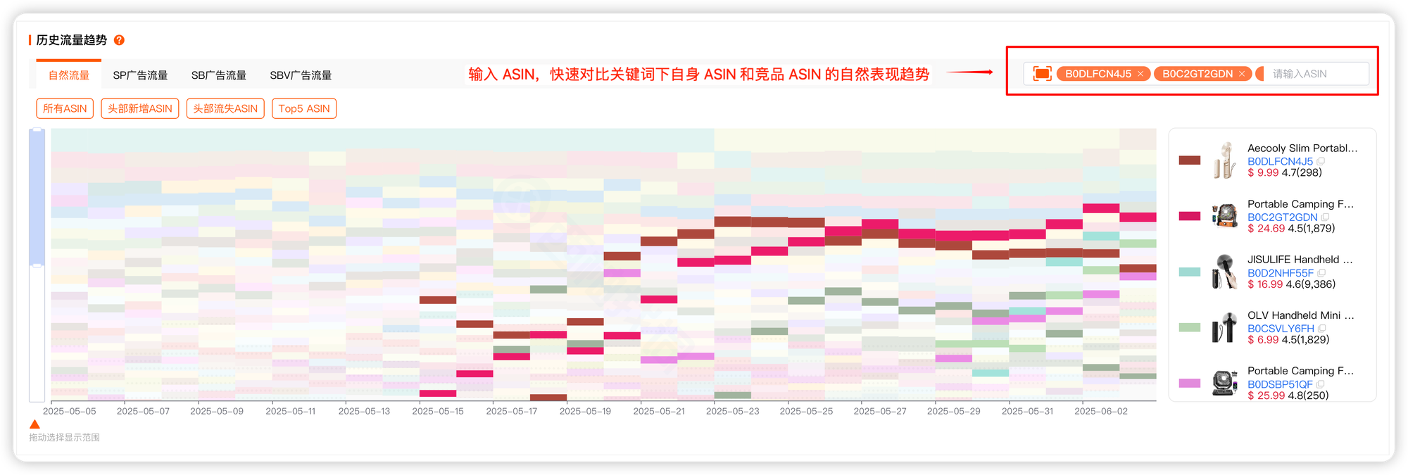 快速对比自身 ASIN 和竞品 ASIN 自然表现
