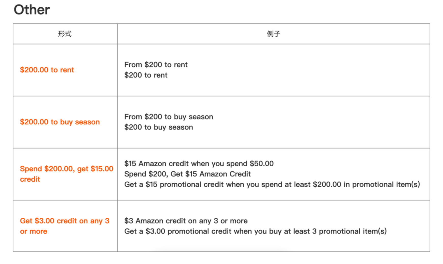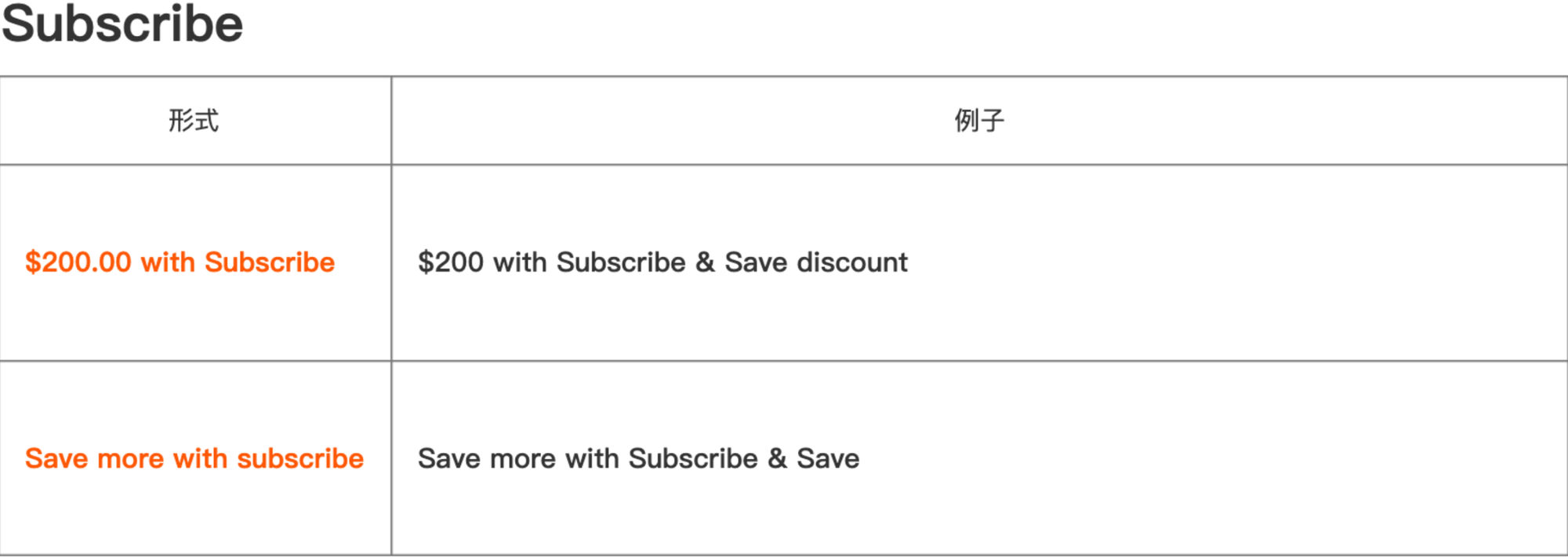 (说明:左列‘形式’是西柚网站的表达,右列‘例子’是亚马逊网站的文案形式)