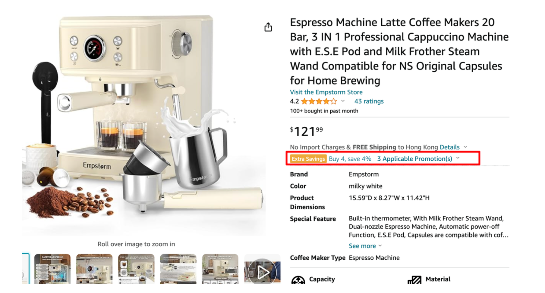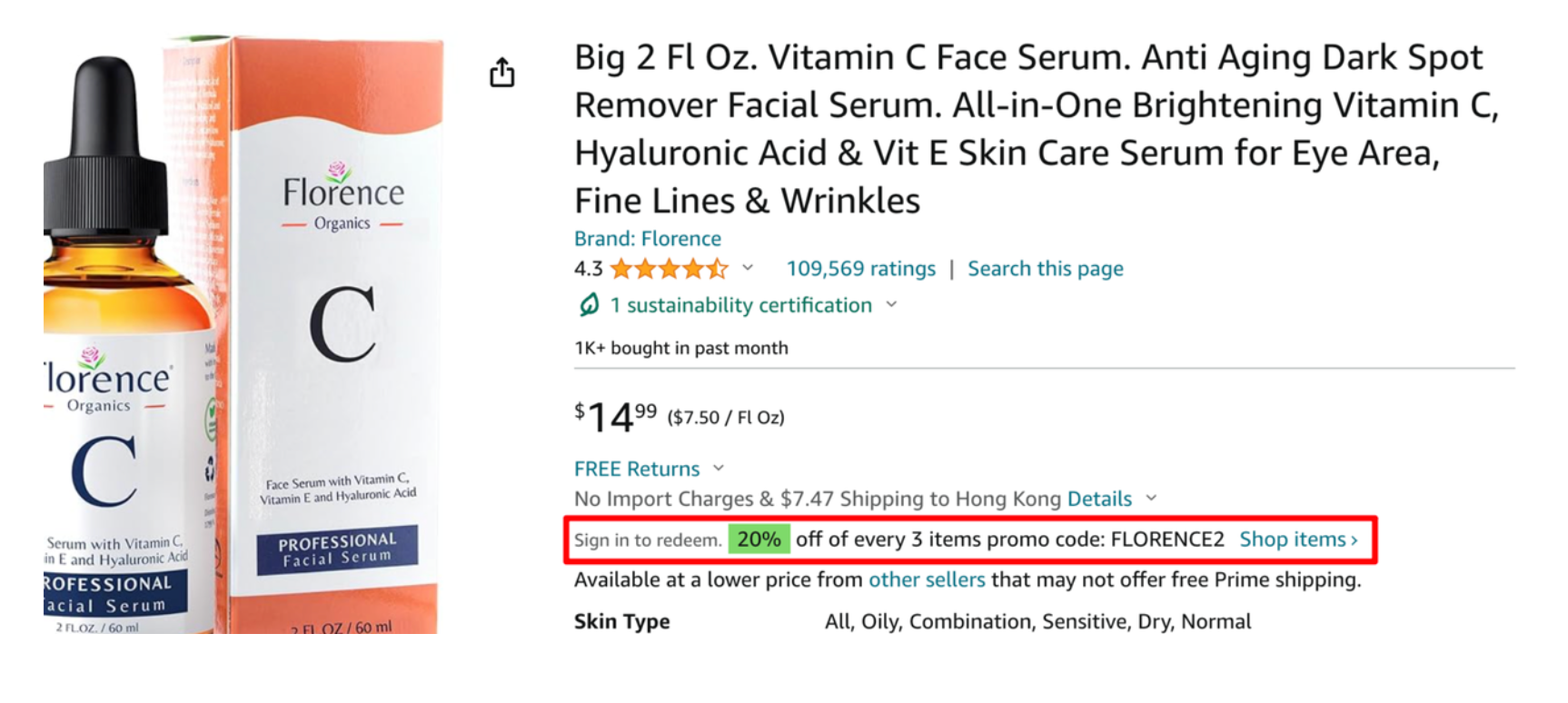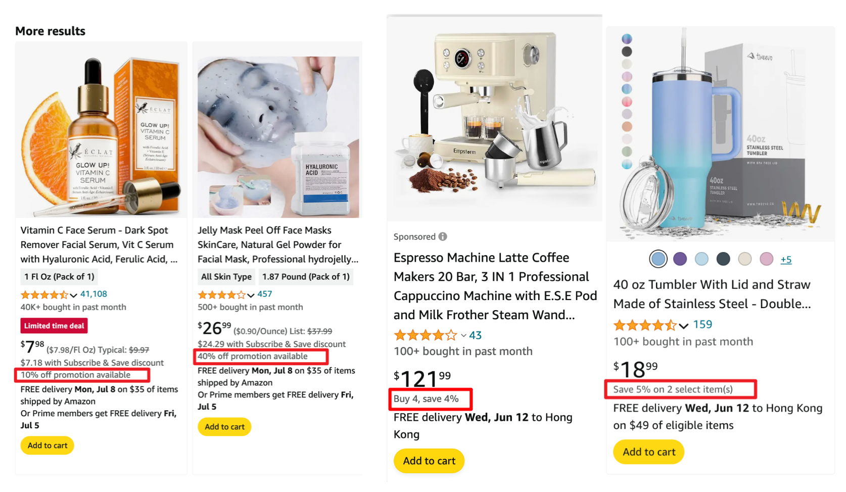 一般参与该活动的Asin会在搜索结果页和商品详情页有标注。