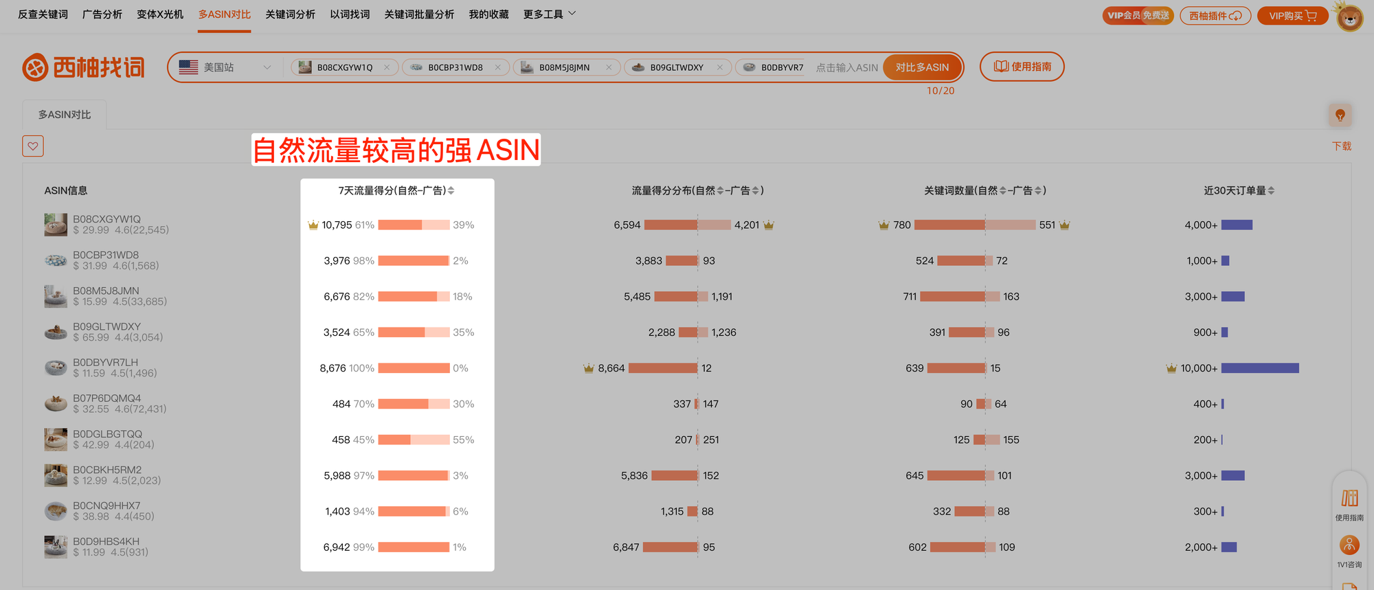 - 这批ASIN在某个关键词下的总体自然表现(总体自然流量)