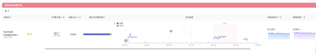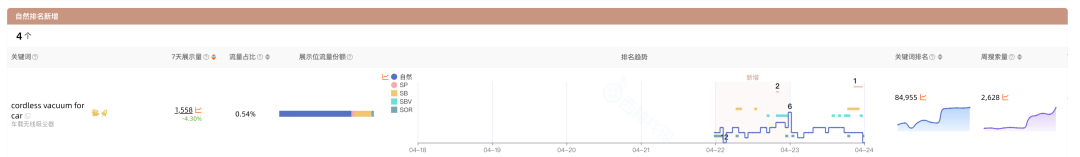 昨日ASIN在关键词搜索结果页前3页无自然排名,但今日出现自然排名的关键词。