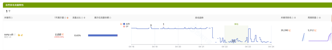 昨日ASIN在关键词搜索结果页前3页有自然排名,但今日自然排名消失的关键词。